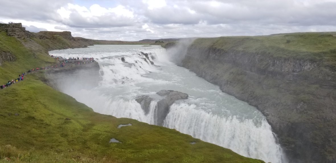 Gullfoss is on the Hvita (White) river. This river is fed by Iceland’s second largest glacier, Langjökull. We were a good distance away from the falls, but you could still feel the ground vibrate and the mist in your face. Definitely worth the chaos, I had never seen a waterfall like this.