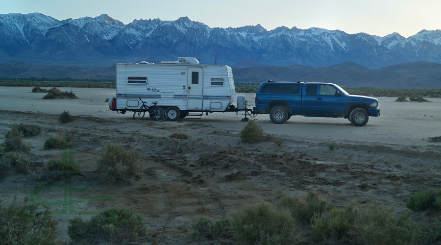 For a vast, convenient camp spot off Highway 395, head out to the Lone Pine Dry Lakebed. Depending on the season, this could be a good option for some warmer temps at the lower elevation. As with any dry lakebed, there are plenty of spots to choose from and any size rig can easily be accommodated. The road conditions are nice and easy as well. This is a good choice if you value ease of access, cell service, no crowds and good solar.