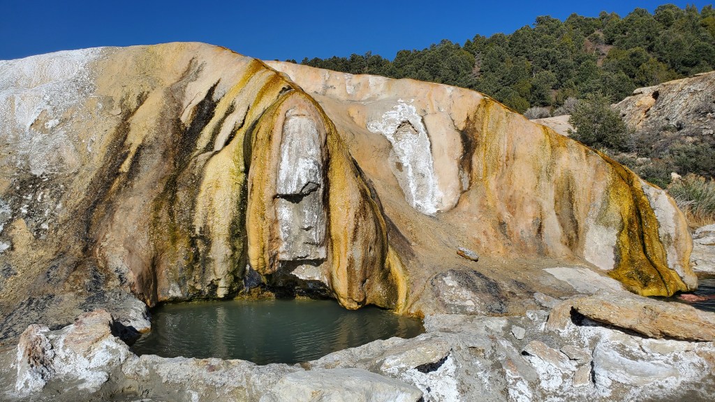 Travertine Hot Springs was the most unique and beautiful. These were individual pools fed by water down individual spines from the rock, which created the unique colors. At the time that we were there they were luke warm, but on a hot day that would be amazing. There is also camping close by and again no services so please practice Leave No Trace. You wonder why I mention this a lot and it’s because you would be surprised how many people disrespect these places. Either by complete disregard or laziness.