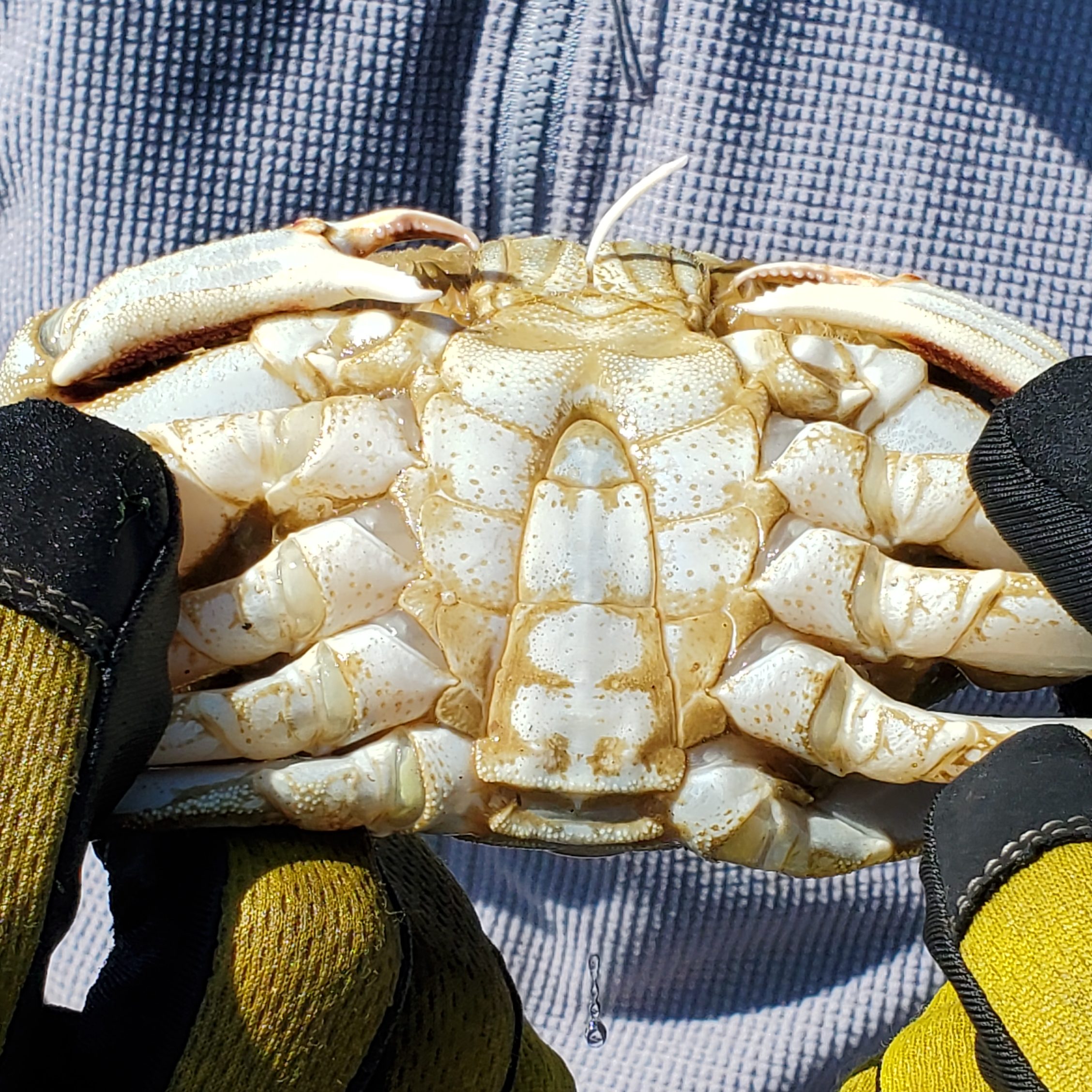 A Female Crab: This is a female. You must throw her back, it is illegal to keep.