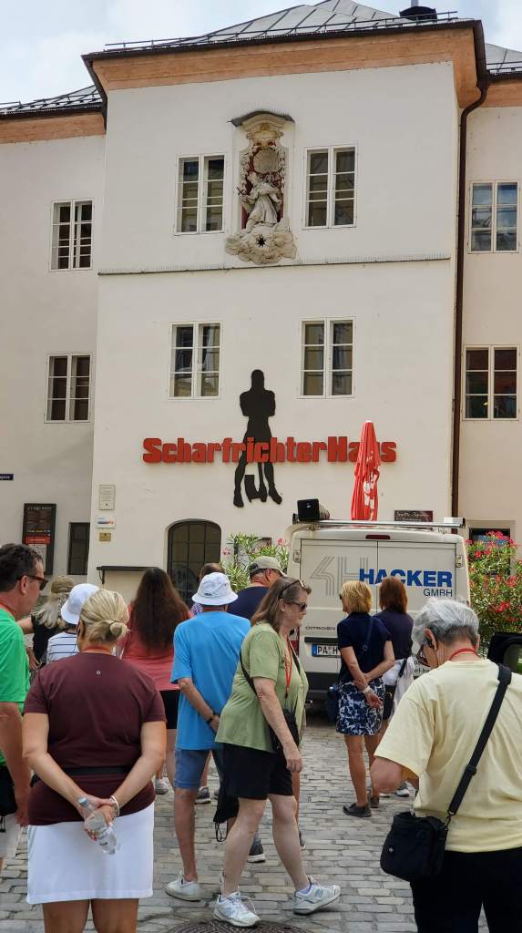 We fell in love with Passau. What we thought was going to be a small sleepy town, ended up being another favorite. I think I have said this already, but we couldn’t believe how cool the town was. The church in center of town, old cemetery headstones, promenades to have a drink while people watching, run along the river or take a moment to sit and take in the views! You do have to find the door of the building where they used to keep people that caught the plague. They still say now that if you touch it you will get the plague so we all steered clear. Then make your way to the old prison built in 1200, which became the home of the local executioner and now it’s a cabaret theater.