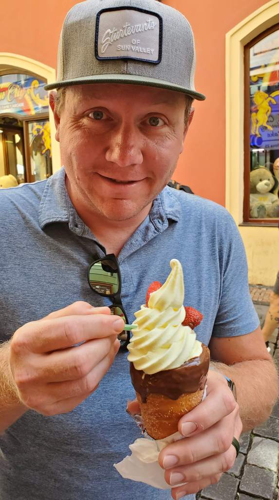 We could see a pattern throughout the trip of beer being quite cheap and readily available. We learned that the Czech Republic drinks the most beer per capita in the world and it has held that no. 1 spot for almost 30 years! Kevin did not mind fitting in with the locals.
