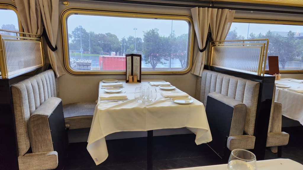 The food one the train was actually quite good. We sometimes get nervous when there is large scale production of food, but here we were pleasantly surprised. If you are not in a group of 4 you will be partnered with other people. Since we were 3 we always had a solo traveler added to our table. It was nice meeting people from around the world.