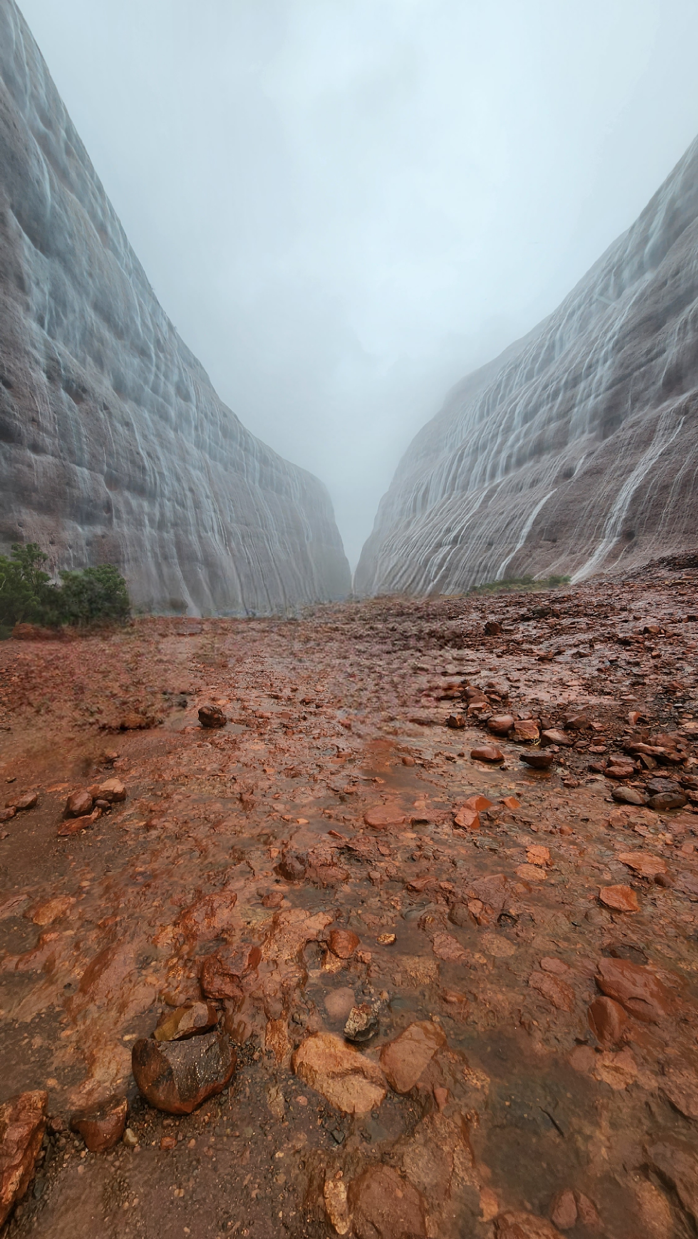 As you can see from these photos there is actually a lot of green. They have been getting a lot of rain and so it wasn’t just red and browns. Our tour guide, right from the beginning was saying she hoped it rained because only 1% of tourists get to see waterfalls in Kata Tjuta. I wasn’t hoping for rain because I didn’t understand what it meant and I dislike hiking in the rain!