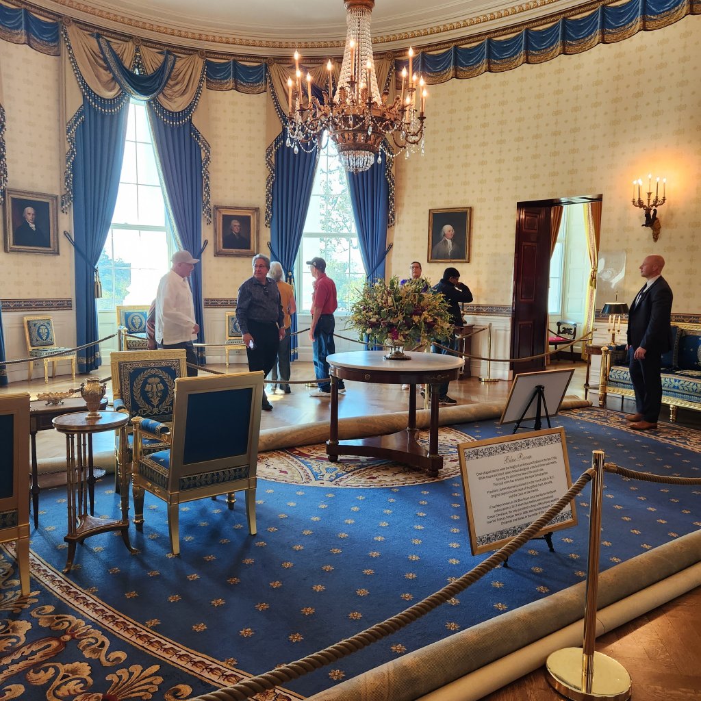 The amount of working dogs was a surprise, but I guess it shouldn’t have been. I am fascinated by them, so it was neat being able to watch them. I almost spent more time watching them than paying attention to being in the White House! The self guided tour is through parts of the East Wing. The first floor are rooms that you can look into but not go in. Most of it is old rooms used by previous presidents that have gifts and memorabilia. The theater is also on the first floor that gets used as a coat check for events in the main rooms on the main floor. If you are invited to a state dinner or an event you enter through the East Wing.