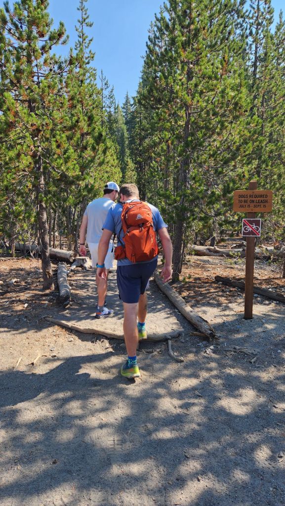 To the south from Bend, this trail is another great family friendly loop! it is 7 miles, but with only 300′ in elevation gain it is a walk in the park around a beautiful lake in the mountains. The highlight of this trail is about midway, there is a hot springs. Not always guaranteed hot, nor are there always pools, but if you make it when the hot water is flowing you can build up your own pool.