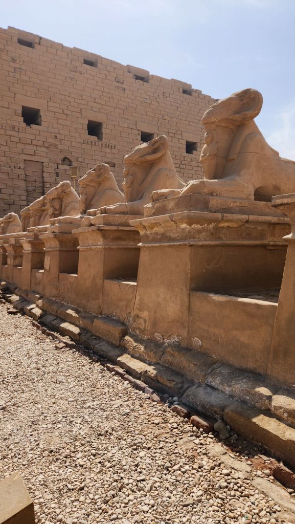 The Avenue of the Sphinx connects Karnak and Luxor and is 1.7 miles long. It just opened in 2021 to tourism after decades of restoration. It was an incredible thing to see. Knowing that Pharaohs and Kings were carried from one temple to the next. I wish we would have had time to run along it but we got to see each end and the middle.