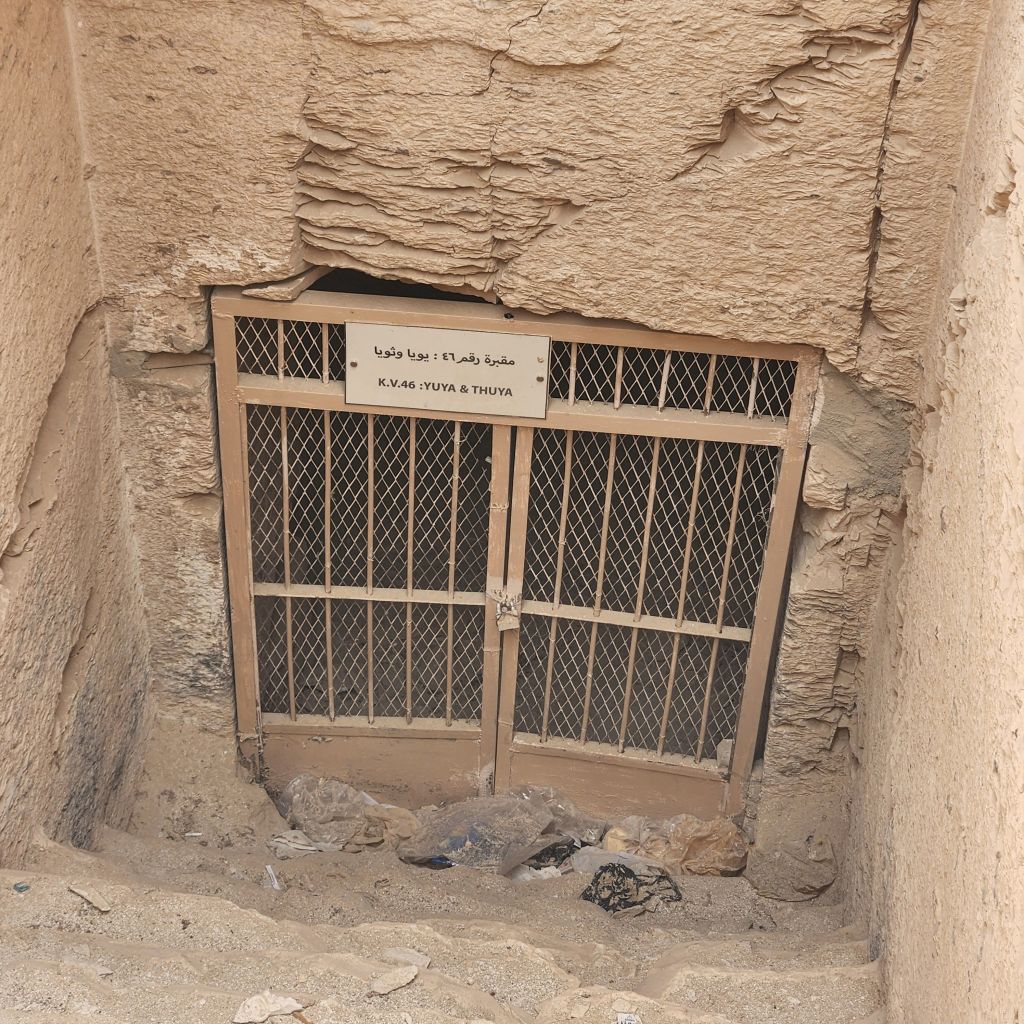 Remember Thuya from the Egyptian Museum in Cairo, the last picture is the entrance to his and Yuya’s tomb! Buried together and now on display together at the Egypt Museum.