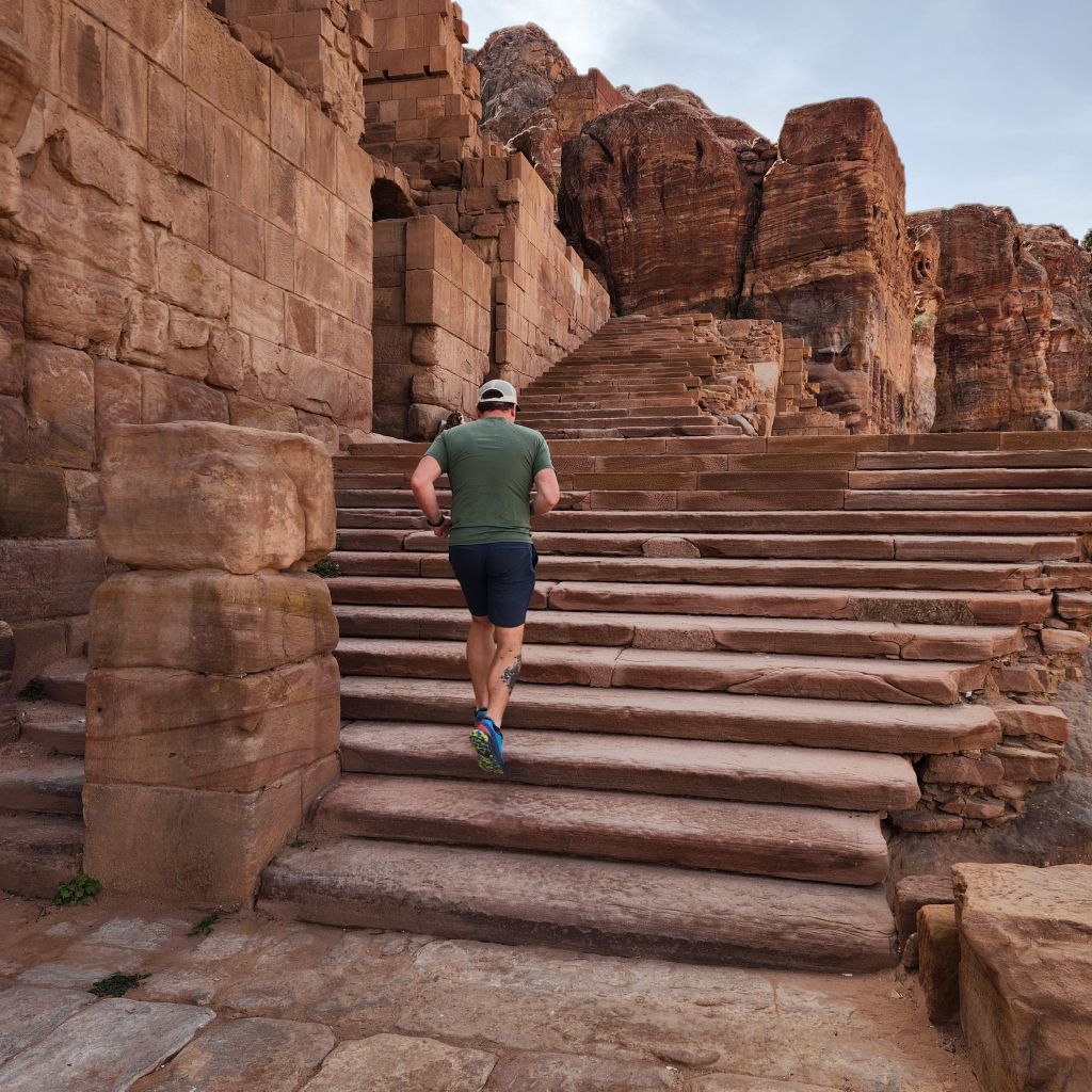 The climb to the Monastery has you climbing uneven rock steps along towering rock walls. Along the way vendors have set up stalls with items to buy, drinks and some food. They are not nearly as bad as any places we went to in Egypt, but it still was a bit odd at some points.