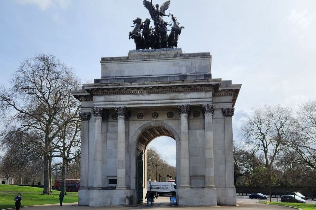 After you get your picture of Buckingham Palace, continue on and past the palace and you will come to Hyde Park. The largest of the royal parks at 350 acres of green it was established by King Henry VIII. In 1689 King William III had a road laid for his use only from Kensington Palace. It is believed that this road is the first lit road at night. Horse riders use it today.