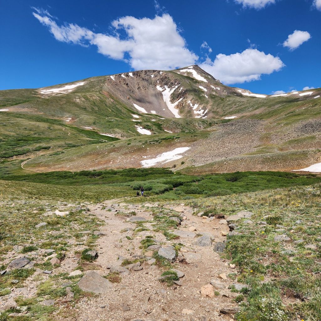 We definitely took it slow and came across a few couples that had went to the peak and said that the last half mile was steeper than what we were on and very loose scree. They didn’t recommend heading any higher at the time, especially since there was a storm rolling in.