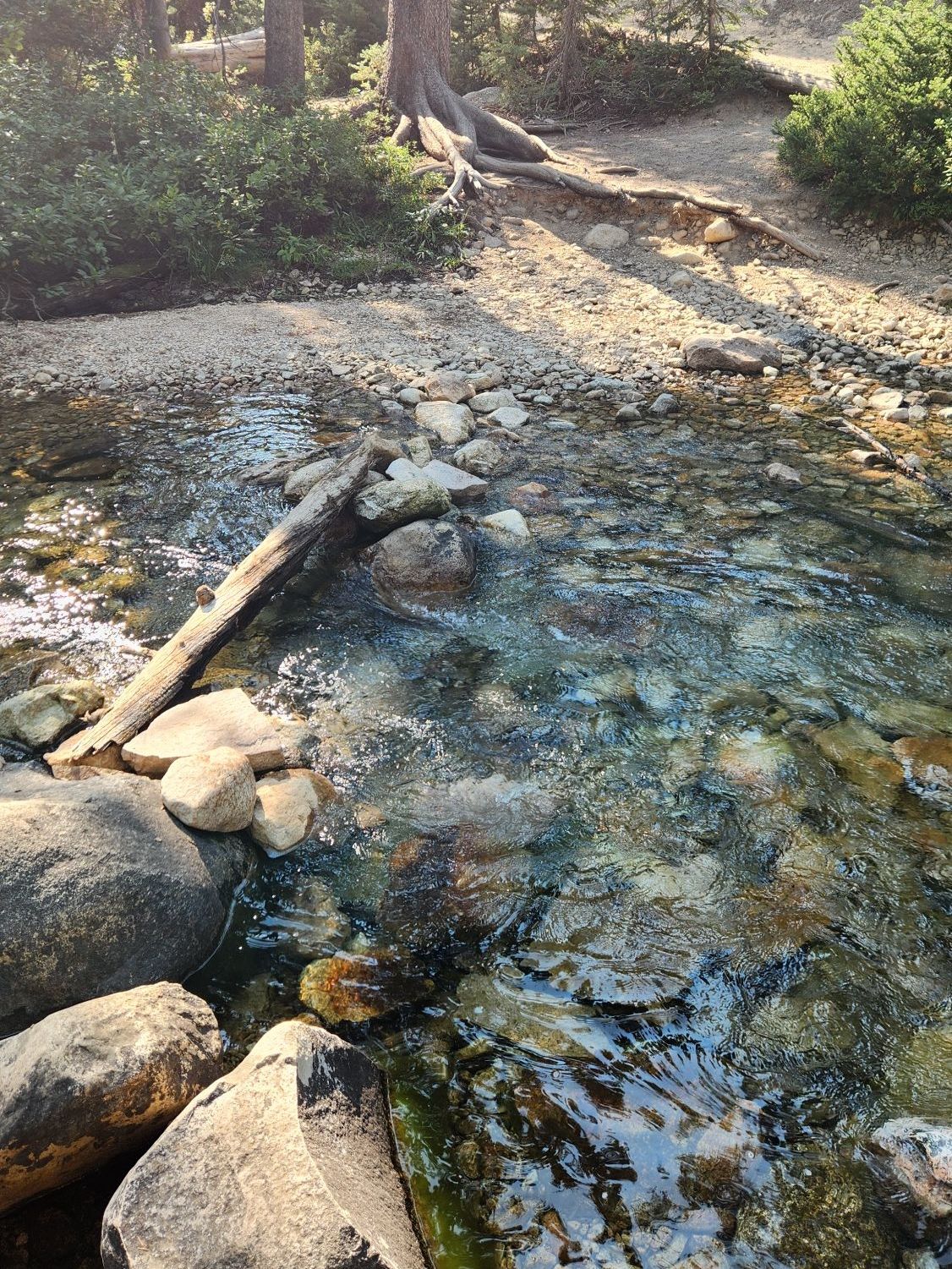 We took some time at the lake before we moved on to find some water. As I mentioned at the beginning, there are multiple places to fill water. The clear water from the streams the entire way are cold and refreshing. There are a lot of options out there of filtration devices and some decide to use iodine drops. We use a Solomon water filter. The cap of our water is the filter so we can fill it with water and then drink right out of it. It is easy to carry and you don’t have to wait for it to filter.