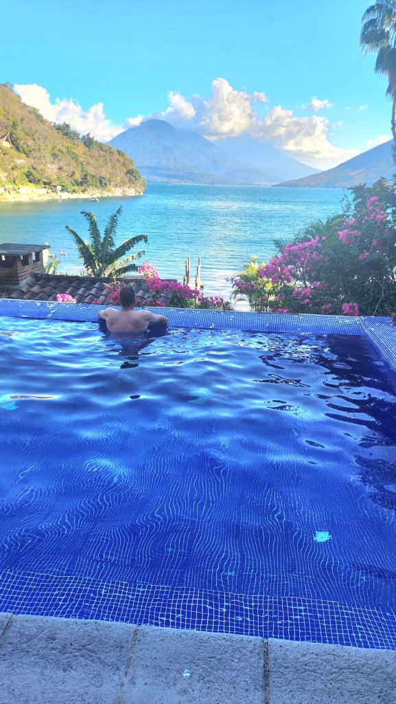 The first thing to mention about Lake Atitlán is that it sits at 5,000′! I was not aware of this and didn’t even think to look, but you will notice that when you start driving to the lake, you climb and climb and at one point you hit over 8,000′. The lake is surrounded by mountains, hills and volcanoes and so every inch of lake has an incredible backdrop. You will also find that a lot of the eco friendly huts are along the hillsides. This isn’t a lake with resorts lining the waterfront.