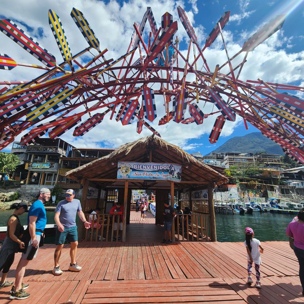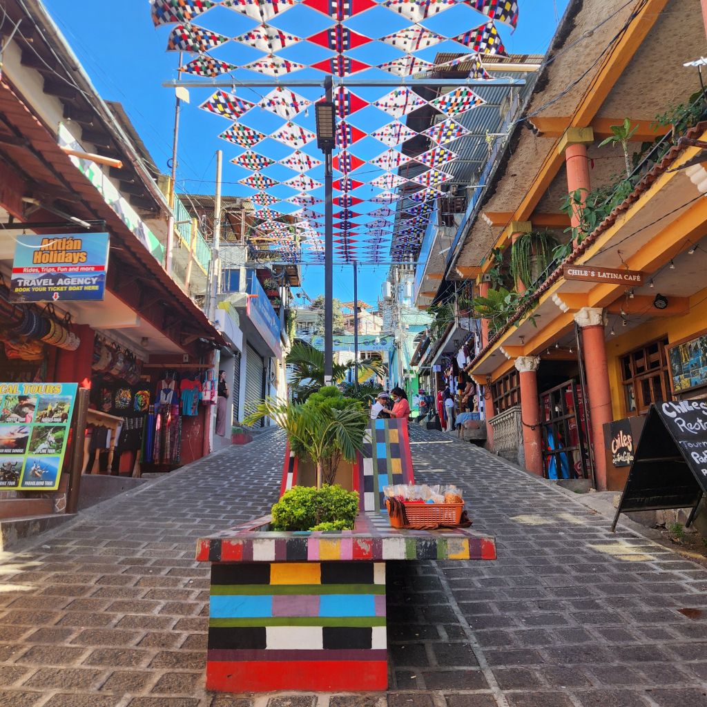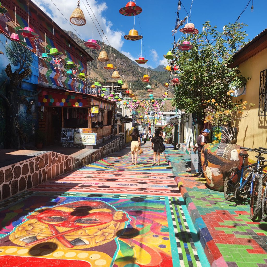 This was our favorite town to explore while being on Lake Atitlan. The multiple streets lined with colorful decorations, the street art and the plentiful restaurants was great. It was an easy boat ride from either San Pedro or San Marcos.