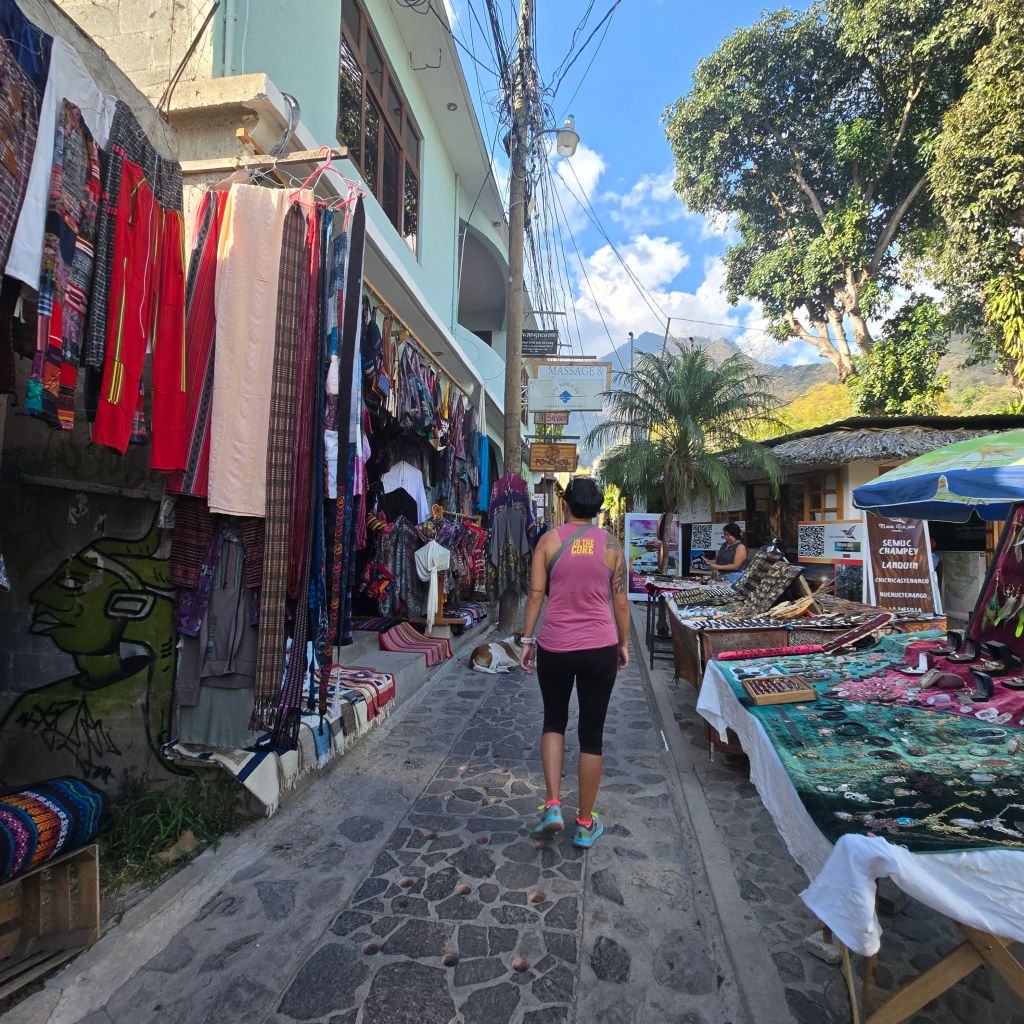When you arrive at the docks, you are immediately welcomed with the colors that Guatemala is known for. Decorations and beautiful streets. I didn’t do my research regarding what it would be like around the lake. I am from Minnesota so around every lake it is flat. I know that people come here to hike the volcano, but I guess I didn’t realize that the entire lake was surrounded by mountains. Whenever you go you would arrive to a climb to get to the main area.