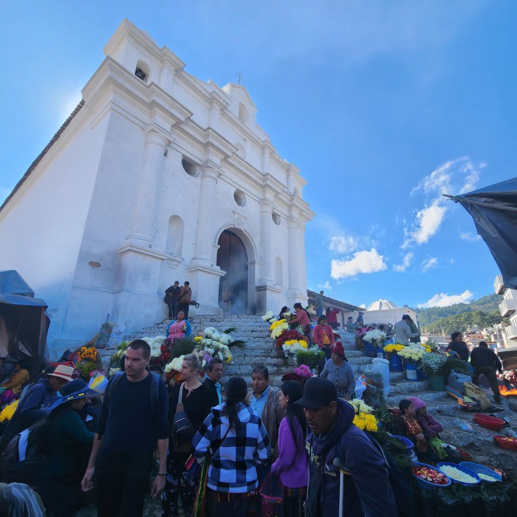 Inglesia de Santo Tomas is the main church in the town. Built as a Roman Catholic church atop a traditional Mayan temple to wipe out the Mayan religions. The story is, when the Spanish came and built the church to convert the local people, they hired the locals to build it. Unbeknownst to them the locals built it to still honor their religion. Instead of wiping out the religion, it ended up blending the two. To this day they still hold traditional Mayan ceremonies and burn incense.