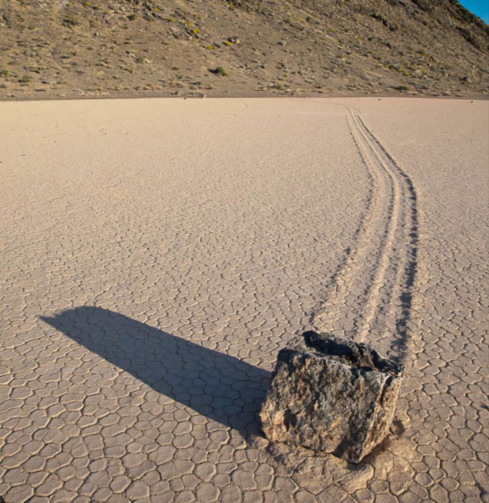The RaceTrack is one of the farthest of attractions. 27 miles down a gravel road from Ubehebe Crater, it is one of the coolest dry lake beds you will see. It is called the RaceTrack because there are random large rocks with their tracks behind them. No one has witnessed the movement so all you can do is guess as to how they get where they are! Please do not move any of the rocks or ruin their tracks. It is also just fun to run around the playa!