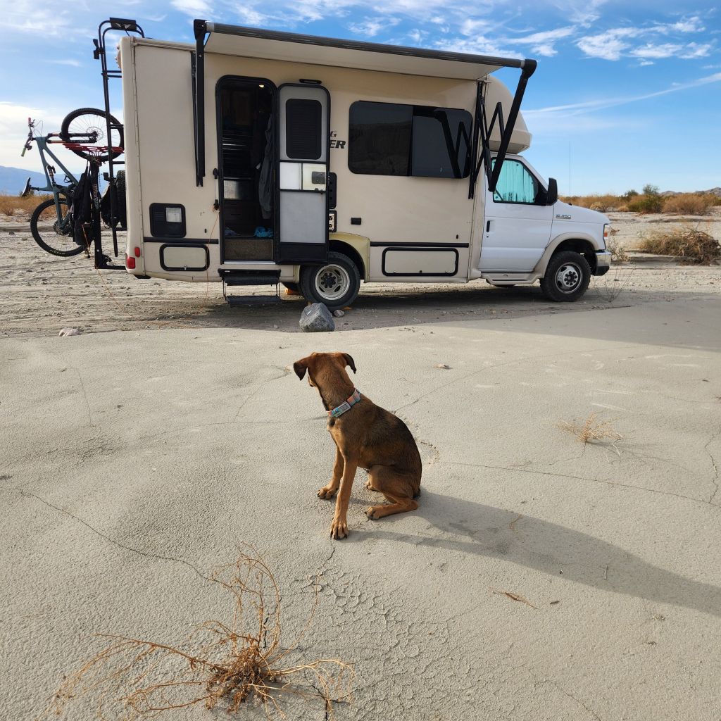 Now, this was boondocking like we are used to. An open area, where you can choose your spot and no one parks too close. We had a beautiful view and some gravel roads for Anza to exercise!