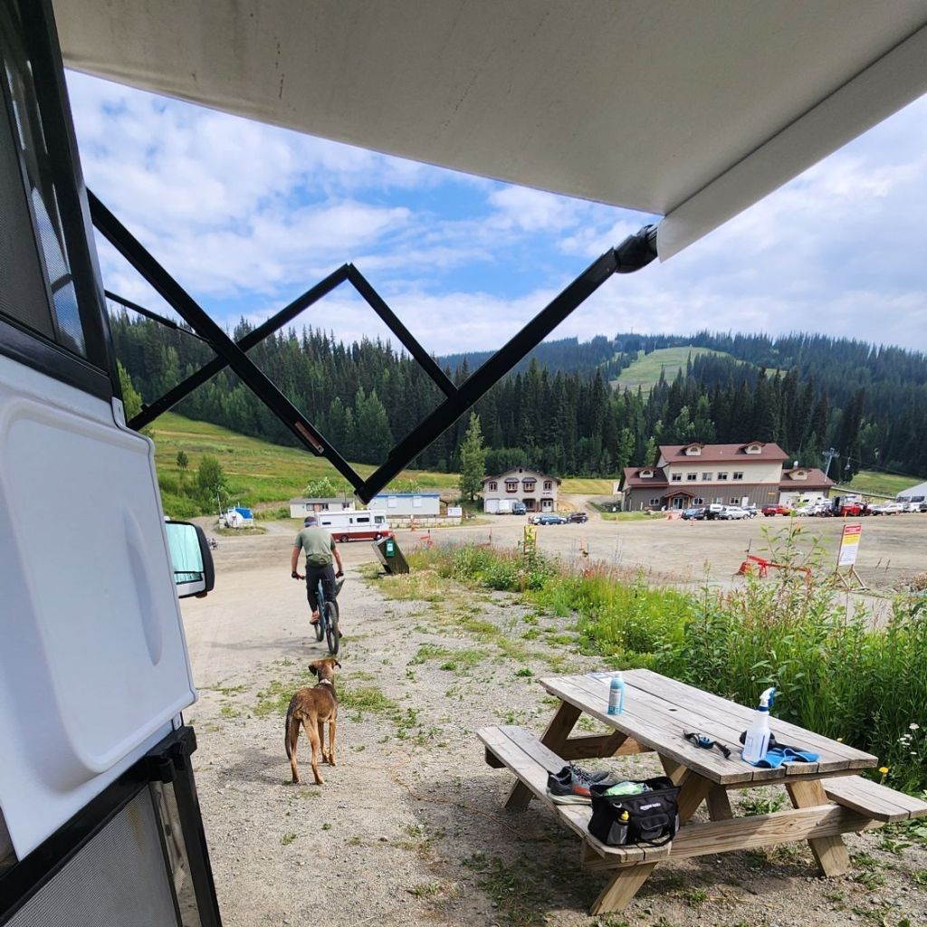 Canada was meant to be a mountain bike park tour for Kevin. There isn’t boondocking but the resort had a parking lot that was set up for RVs to be close to access the bike park. It was convenient for getting out on the trails and into the small village. There were bathrooms across the parking lot.