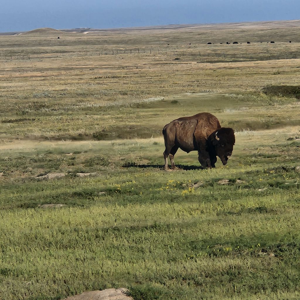 This could have been one of my favorite stops along the road. The colors of the mounds and we were lucky enough to have a bison roaming below!
