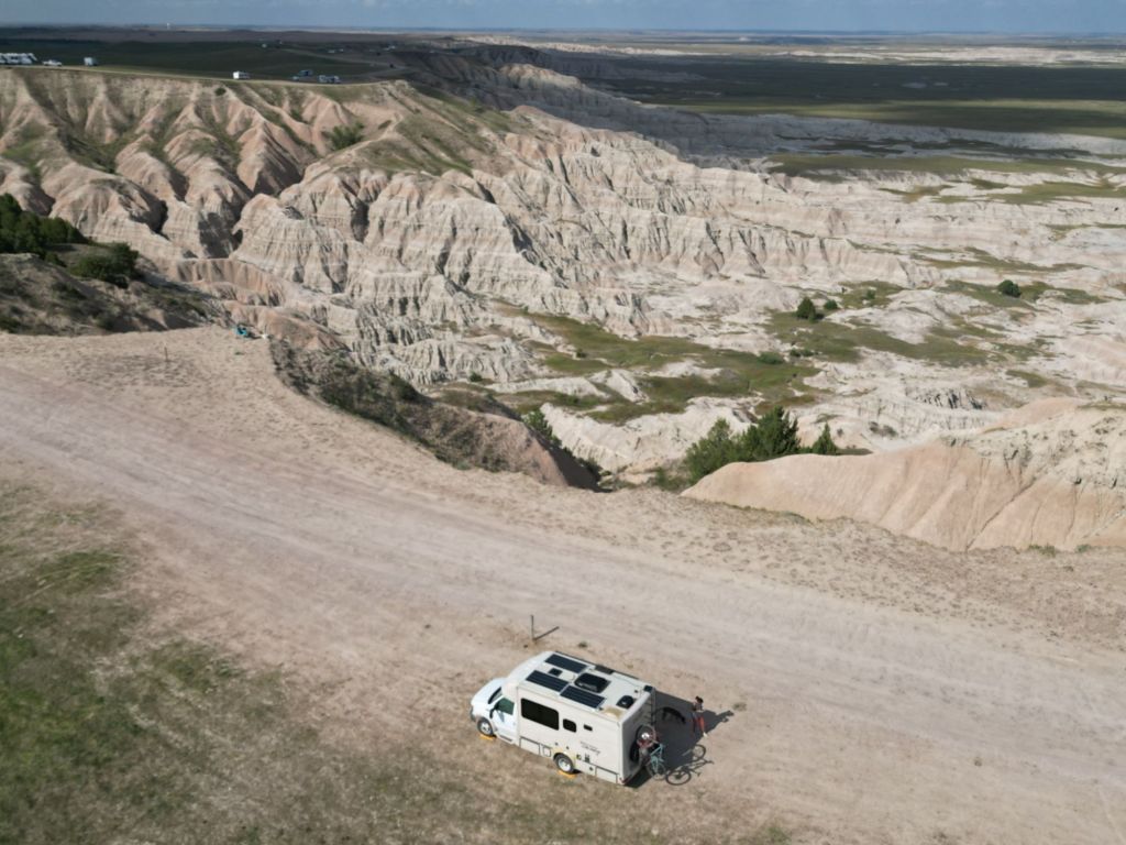 As we mentioned, the best way to visit Badlands National Park is by RV. The area where there is free boondocking is near the western entrance and along the “loop” road. There are big views (especially during a lightening storm), a lot of stops and awesome sunsets. Start and end here.