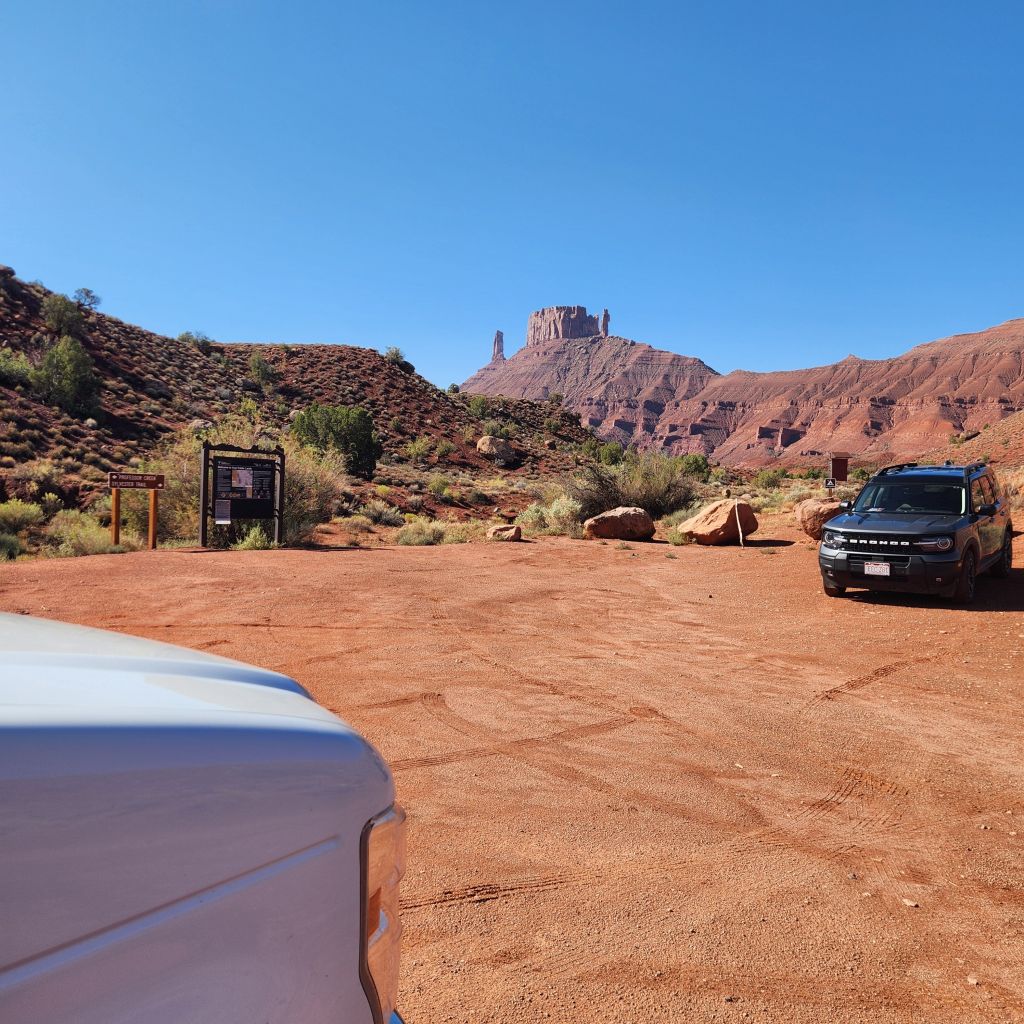 The drive to get there is a bit out of the way and then you still turn down a long rutted gravel road with sharp turns and narrow spots. The parking lot is not large, so I would suggest not towing anything and there is no longer free camping along the road for vans or trucks wanting to just go part way and then walk. The parking it lot is where BLM 98 ends.