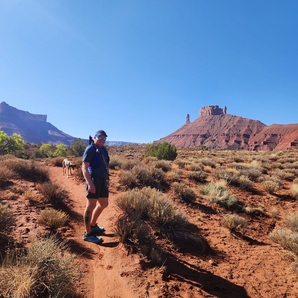 We always enjoy our time here but this time we decided to not venture into a park and to just experience Moab and its trails. There are quite a few options once you really start researching. We were going to be there on a warm day, had a dog and wanted a little adventure to the hike. The one that kept coming up was Mary Jane Canyon. So, Mary Jane Canyon via Professor trail was our adventure for the day.
