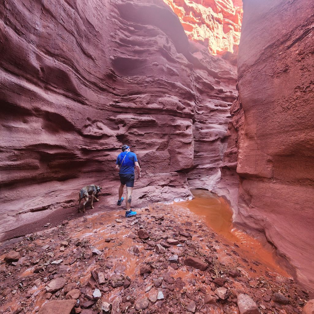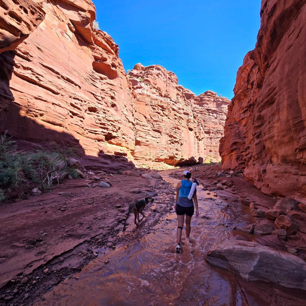 I will start this off with a warning. This trail is fully exposed and on a very hot day, even with hiking through water, make sure to bring enough water to drink (the water you walk through is not good to filter or use drops) and sunscreen. It can feel like you are trapped in a heat bubble very quickly. But as I said there is plenty of water through this hike for dogs. I would still suggest this in the spring, winter or fall and be very aware in the summer. We were there in the fall and didn’t know if it would be hot enough for it to be comfortable while hiking wet. Well it definitely was and so we were glad for the never ending water source!