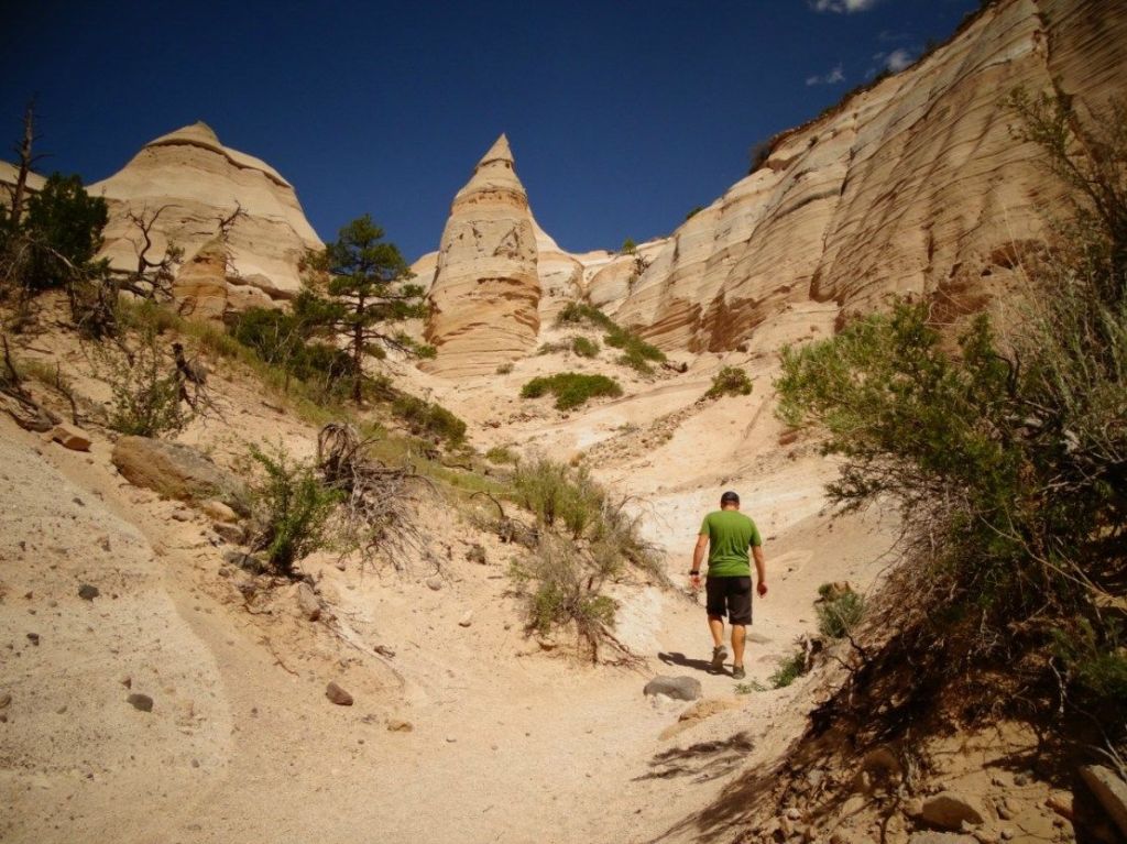 Kasha-Katuwe Tent Rocks National Monument is an hour west of Santa Fe and one of the most beautiful places in New Mexico. There is a bit of planning to visiting this national monument. It is managed by BLM but it is on tribal Property. So aside from getting a reservation to Tent Rocks, Thursday-Monday, you will also have to get a Cochiti Pueblo Tribal Access Pass when you enter. It is well worth it for everything you get to see and explore. We love slot canyons and the short canyon you get to hike through is amazing, especially when the lights hits just right. There is a short steep climb and so be prepared. It might seem a little more difficult than usual since it sits at 7,000′.